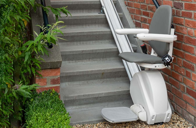 Un monte-escalier pour l’extérieur et un monte-escalier pour l’intérieur se ressemblent beaucoup. La grande différence est qu’un monte-escalier pour l’extérieur bénéficie d’un traitement spécial pour une utilisation en extérieur. Un traitement hydrofuge et une housse empêchent la corrosion et protègent le monte-escalier contre les intempéries.